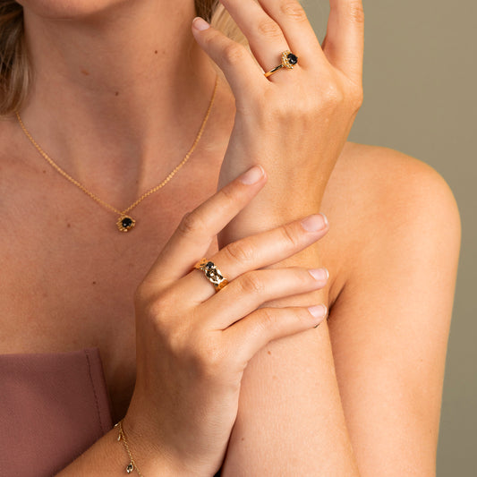 Stone ring i sølv, justerbar